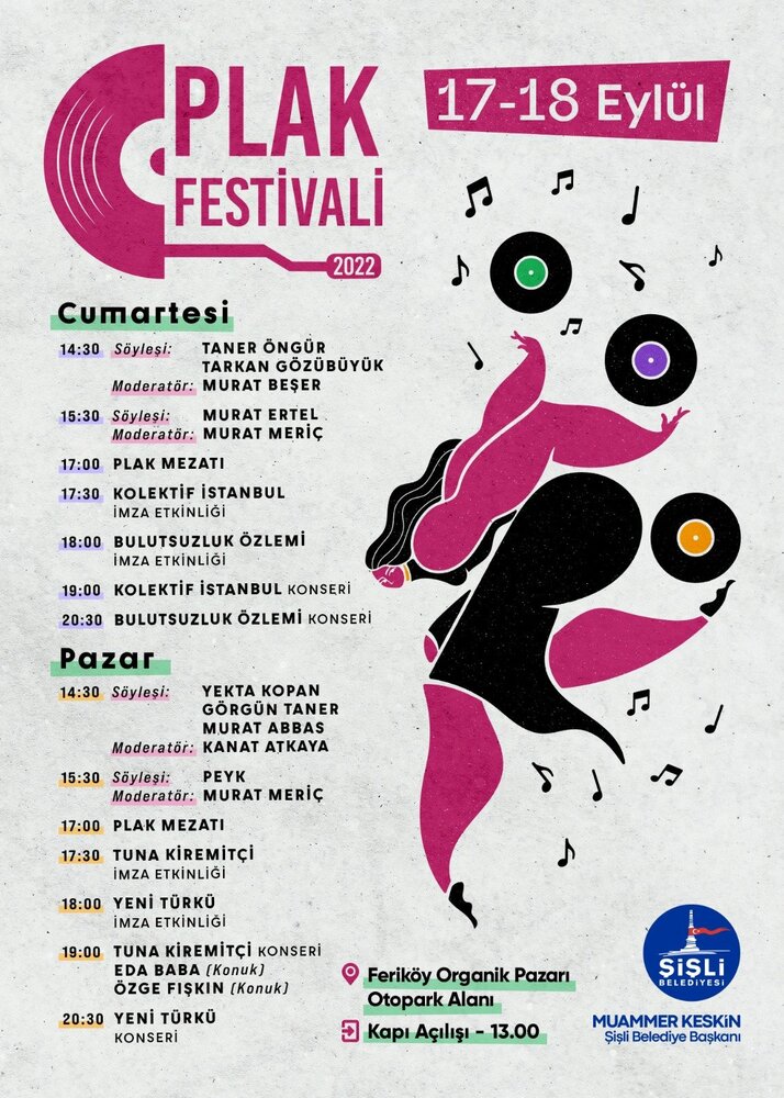 Şişli Plak Festivali ile sanat ve eğlence dolu bir hafta sonu sizi bekliyor!🎶@kolektif, @bozlemi, @kiremitciev, konukları @eda_baba ile @ozgefiskin ve @YeniTurku birbirinden güzel şarkılarını müzikseverler için söyleyecek. pic.twitter.com/4ar8BnefBN