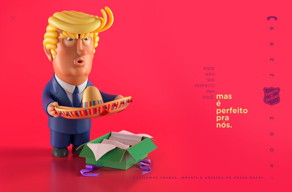 “Unwanted Gifts” kampanyasının bir de bu abartılı ve gerçekdışı tonuna uyan basılı ilanları mevcut. Ajans basılı ilanlarda Kim Jong-Un ve Donald Trump gibi uçlarda takılan politikacıları seçmişler ve onlara üzerlerine uyamayan birtakım kıyafet ve objeler yerleştirmişler. Mesela Kim Jong-Un “I Love NY” tişörtü tutuyor elinde, Trump’a da birileri Meksika şapkası hediye etmiş. Böylelikle ilanlar da aynı mesajı vermeye devam ediyor; “sana uymuyorsa belki başkasına mükemmel olabilir”.