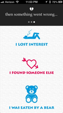 Jake Levine ve Lauren Leto tarafından geliştirilen uygulama ile 5 saniye içinde 162 kelimelik epik bir ayrılık mesajı oluşturabiliyorsunuz. Onlar da tabii kendilerinin ve arkadaşlarının başından geçen olaylardan ilham almışlar. Yalnızca bir tatil gününde tanışıp birkaç gün ya da saat geçirdiğiniz birinden kafa yorduğunuz ciddi mesajlarla ayrılmak gülünç olabilyor, belki de bu uygulama iyi bir yoldur.