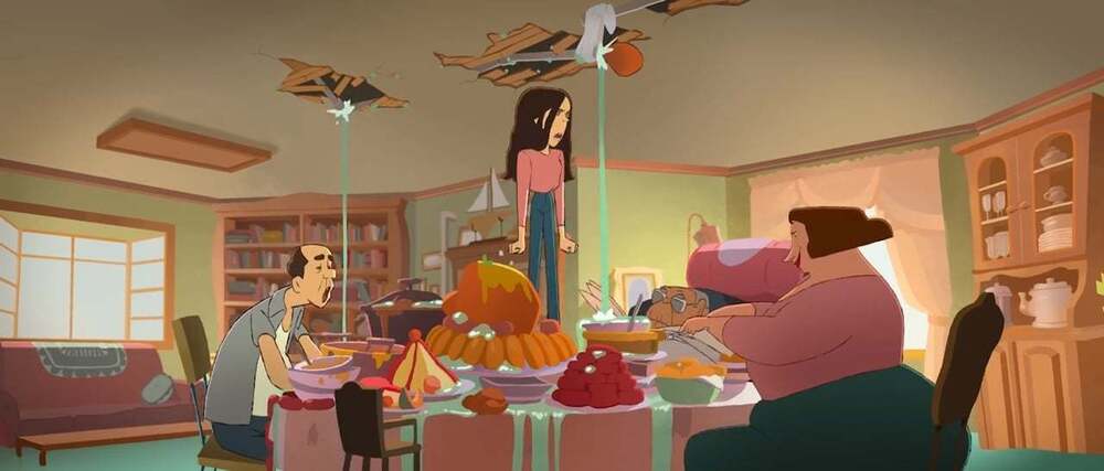 Masa sular içinde yüzerken, küçük kardeş neredeyse artık boğulacakken bile gelsin pastalar, gitsin çörekler şeklinde yaşayan bu gamsız aile ve ergen kızın aile karşısındaki tepkileri çok güzel. Buradaki muhabbetler de oldukça komik. Örneğin, ufaklık masadan suya düşünce anne onu bezinden yakalayıp “Yemek bitmeden masadan kalkmak yok!” diye uyarıyor. Veya genç kız, artık bir masa olmadığını belirtince “E ne güzel işte, havuzumuz var” yanıtını alıyor. Müthiş bir vurdum duymazlık gerçekten! Aile artık yemek odası sular altında kaldıktan sonra bile tavan arasına sığınıp hala yemek yemeye devam ediyor. Filmin sonunda ise hoş bir sürpriz var.