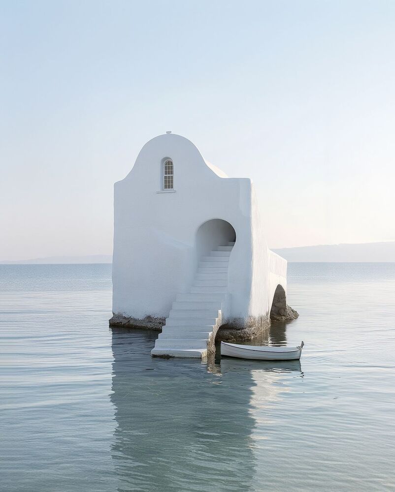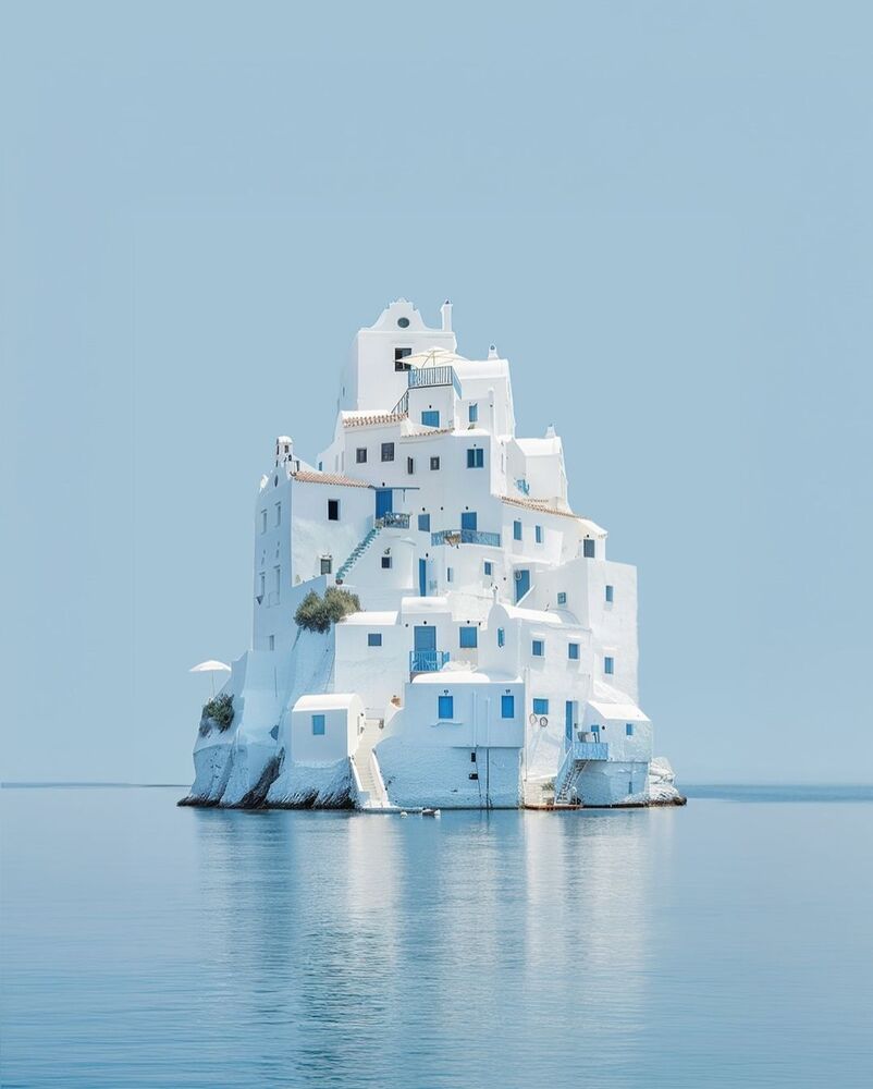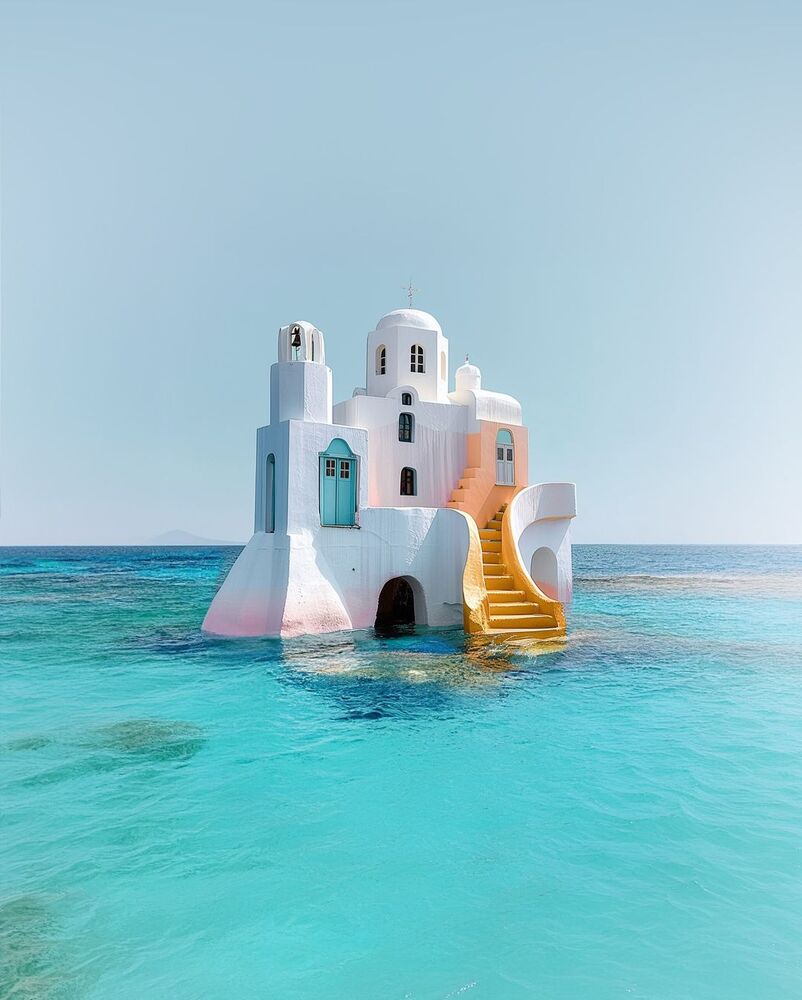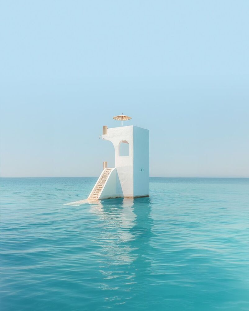 Yunan sanatçı Costas Spathis, Temmuz başında yayınladığı Small Cyclades isimli fotoğraf serisiyle hoş bir estetik sundu. Yapay zeka destekli hazırladığı imajlarda denizin ortasında bir başına duran küçük evleri aranje ediyor. Minimal elementleri ve pastel tonlarıyla aşina olduğumuz bir mimariyi farklı bir ölçekte sergiliyor.