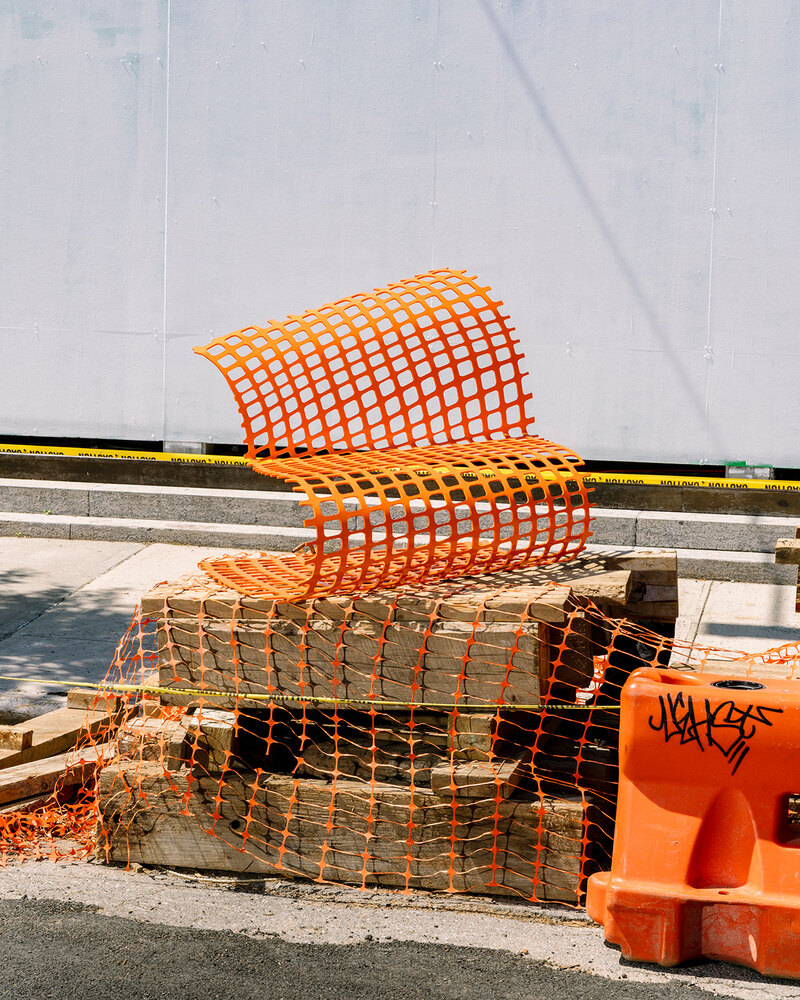 Nisan 2023’te International Objects’teki “Local Objects”de sergilenen Snow Fence Chair (Kar Çiti Koltuğu), pandemi sırasında ortaya çıkmış. O zamanlar, dış mekan oturma alanlarının ve aniden yalnızca yayalara açık hale gelen sokakların kordon altına alınması için kar çiti gibi ucuz malzemeler kullanıldığını gözlemlemişler. Snow Fence Chair, esnek polipropilenin sabit bir 2 kişilik koltuk olarak yeniden tasarlanmış hali.
