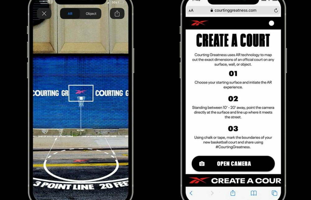 Reebok’un yeni Court of Greatness aracı kullanıcıların basit birkaç hamle ile standart ölçülerde bir basketbol sahası yaratmasına yardımcı oluyor. İnternet sitesi tabanlı araç sayesinde kullanıcılar herhangi bir uygulama indirmeden ve sadece telefonlarının kameralarını kullanarak standart bir basketbol sahasındaki ölçülerini artırılmış gerçeklik sayesinde uygulamak istediği bölgede görebiliyor. Serbest atış ve üç sayı çizgilerinin yerlerinin yanı sıra yaklaşık 3 metre uzunluğundaki basketbol potasının konumlandırılması çizgilere göre otomatik olarak belirleniyor. Bant ya da tebeşir kullanarak sahanın sınırlarını oluşturabiliyor.