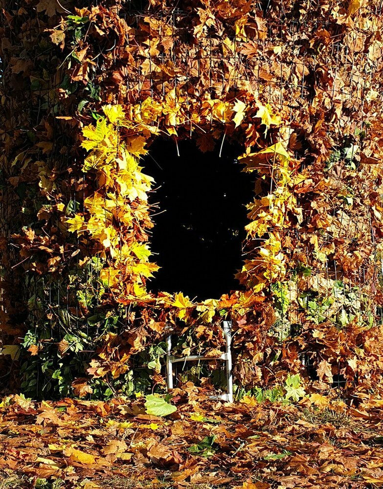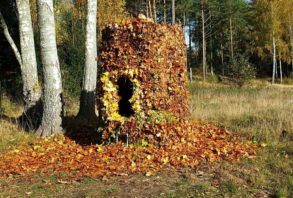 UMA, insanın doğada bulabileceği malzemelerle deneysel yerleştirmeler yapan bir stüdyo. Daha önce mantar, kozalak, kartopu gibi malzemelerle kulübeler yaparak ses getirmişlerdi. Bu önceki kulübeleri haberin sonunda görebilirsiniz. Bu defa yapraklarla çalışarak seriye leaf hut başlıklı yeni bir çalışma eklemişler. Bu minik yapı; sonbaharı kutlamakla kalmıyor yaşamın geçiciliğini de oldukça estetik bir şekilde yansıtıyor. Üstelik çok da sevimli.