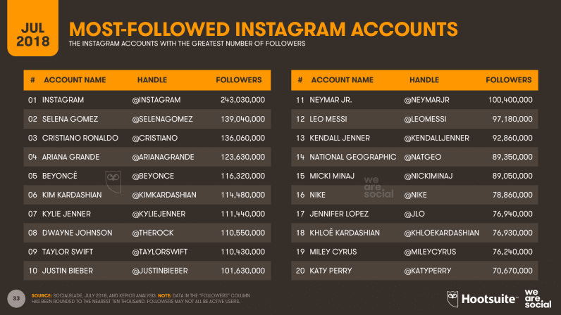 YouTube’sa ikincilikteki takibinde rakibiyle arasını kapatıyor ve 1,9 milyar aktif kullanıcı sayısı elde ediyor. Bu yılın en fazla atılım yapan mecralarından olan Instagram’sa geçtiğimiz haftalarda aktif sayısında 1 milyarı geçti. Tabii ki şirket sonradan bu 1 milyarın aktif kullanıcı değil aktif hesap olduğunu belirtti. Yani bir kişinin birden fazla hesabının olabileceği bir dünyada hala Instagram’da gerçek sayılar meçhul.