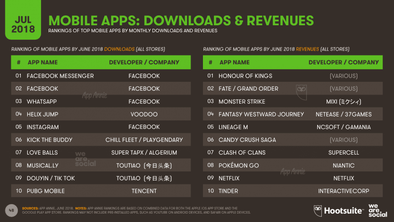 Üçüncü çeyreğin uygulamalarında ise Facebook indirilme kategorisinde birinciliğine devam ediyor. İlk beşte Facebook, Facebook Messenger, Whatsapp ve Instagram’ın bolca indirildiğini görebiliyoruz. Ayrıca gelir listesinde oyunlardan sonra Netflix ve Tinder’ın ilk 10’da kendine yer bulduğu da gözlemleniyor.