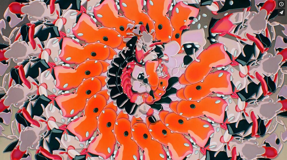 Inaba, daha önceki işlerinden aşina olduğumuz görsel hipnoz estetiğini FLOW’da da koruyor. Bu filmde, soyut formların bir araya gelerek stilize edilmiş organik yaşam formlarına – çoğunlukla böceklere ve kuşlara- dönüşmesini izliyoruz. Tüm bu akış, değişimin kaçınılmazlığına işaret ediyor. Inaba videonun açıklama kısmına aşağıdaki dizeleri eklemiş.