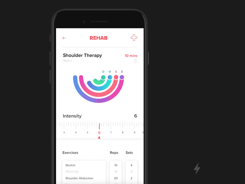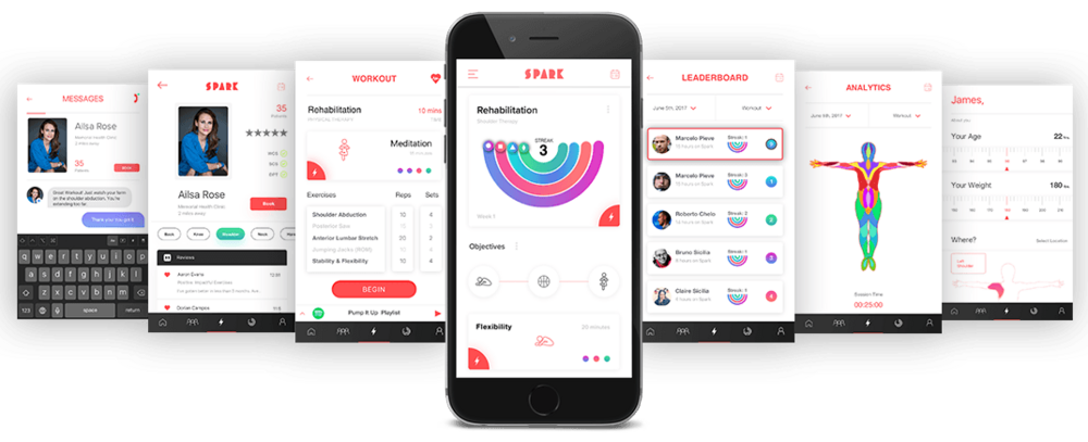 Spark, kullanıcılardan 3 rehabilitasyon aktivitesi seçmesini ister. Bu 3 rehabilitasyon ile hastaları iyileştirmeyi amaçlamaktadır. Kullanıcılar hedefleri belirleyerek ve günlük olarak kendilerini 1’le 10 arasında öznel bir ölçekte değerlendirirler. Bu derecelendirmeler hasta ve terapistin başarılı olması adına iletişim kurmasına yardımcı olur. Ayrıca kullanıcılar terapist sekmesinden terapist seçebilir ve onların değerlendirmelerini inceleyip onlar hakkında yorumda bulunabilir.