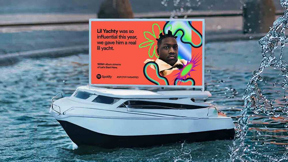 Spotify reklamlarında mizahı bu yıl da eksik etmedi. Örneğin, rapçi Lil Yachty’nin son albümünü kutlamak için Atlanta’nın Centennial Olimpiyat Parkı’ndaki oyuncak yatın üzerine küçük bir reklam panosu yerleştirdi.