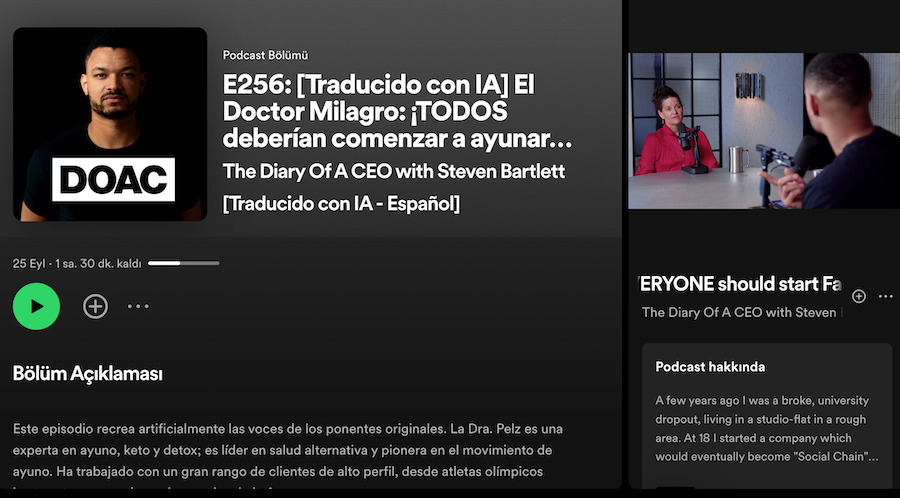 Podcast yayıncılarının bir düğmeye basıldığında anında başka bir dil konuşabildiğini hayal edin. Spotify’ın yeni yapay zeka destekli Voice Translation (ses çeviri) özelliğinin arkasındaki fikir bu. Podcast yayıncısının kendi sesini kullanarak diğer dillerdeki podcast’leri yeniden üretiyor.