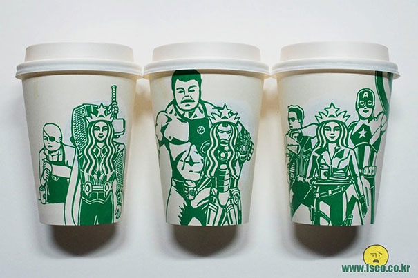 Seullu illustrator Soo Min Kim, Starbucks bardaklarındaki sireni oldukça ilginç ve eğlenceli karakterlere dönüştürmüş.
