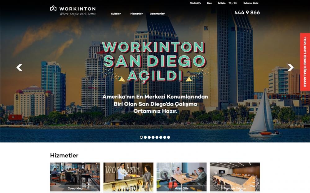 İstanbul, Ankara, İzmir ve San Diego olmak üzere toplam 12 noktada bulunan Workinton; topluluğuna ortak çalışma alanı, sanal ofis, hazır ofis ve toplantı alanları sağlıyor. Bayilik (franchaise) modeliyle çalışan Workinton, hemen her noktasında etkinlik düzenleyerek topluluğuna katkı sağlıyor.