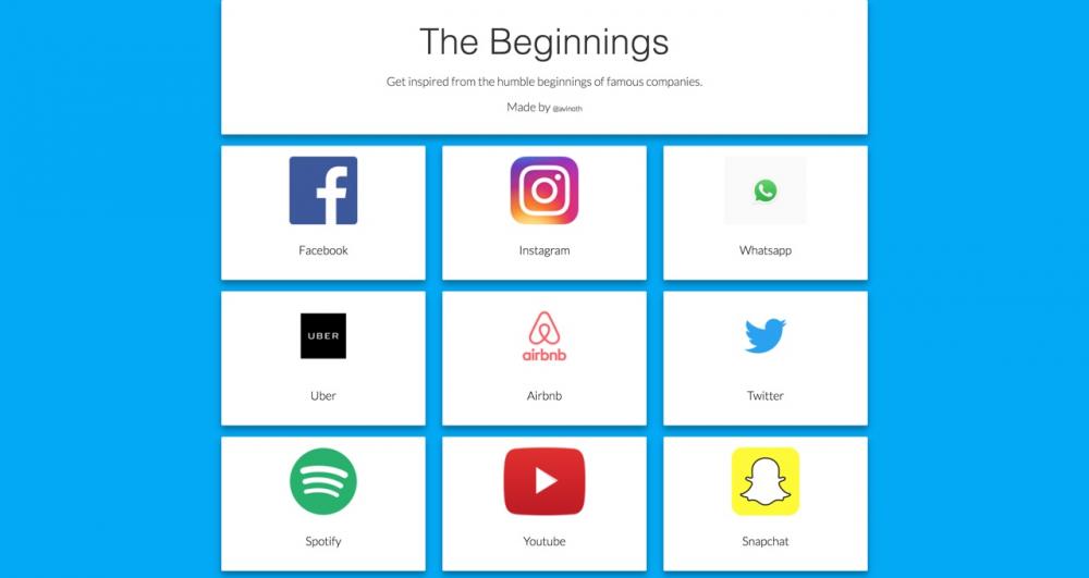 Ünlü girişimlerin mütevazı başlangıçlarına odaklanan The Beginnings, ele aldığı girişimlerin ilk birkaç yılında dijital medyada haklarında yazılan içerikleri listeliyor. Birkaç kişiyle başlayan ve binlerce çalışana uzanan yolculuklarında Facebook, Instagram, Twitter, WhatsApp, Uber, Airbnb, Spotify, YouTube, Snapchat ve Reddit’in emekleme dönemine tanık olmayı sağlıyor.