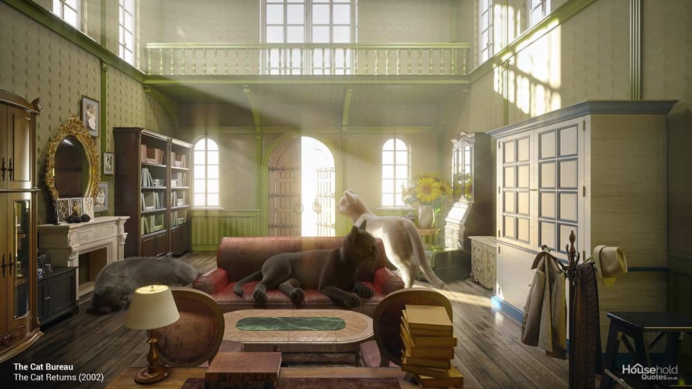 Studio Ghibli filmlerindeki rüya gibi sahnelerin en önemli parçalarından biri benzersiz iç mekanlar. HouseholdQuotes, onları gerçek dünyaya bir adım daha yakınlaştırmak için bu mekanları 3B olarak render’lamış. Hazırladıkları seride 5 farklı Studio Ghibli filminden iç mekan seçilmiş. Bunlar; The Secret World of Arrietty’den Arrietty’nin yatak odası, Spirited Away’deki Zeniba’nın mutfağı, Howl’s Moving Castle’daki Howl’un banyosu, When Marnie Was There’deki Anna’nın yatak odası ve The Cat Returns’den Cat Bureau (dev kedilerle birlikte).
