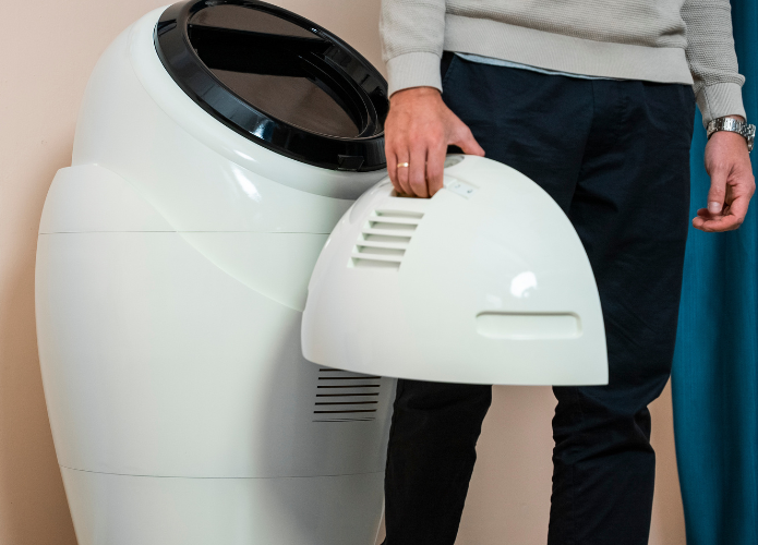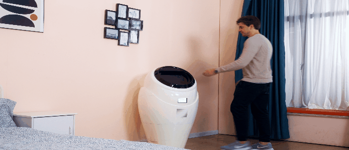 Eeva çamaşırları yıkayan bir çamaşır sepeti gibi. Yaklaşık 1,07 m yüksekliğinde ve 0,61 m genişliğinde olan portatif bir yıkayıcı-kurutucu. 3-3,5 kg’a kadar çamaşır alabiliyor. Sessiz çalıştığı için çalışma odasına bile koyabilirsiniz. Kurutma sırasında sıcak nemi dahili olarak giderdiğinden odaya sıcak, nemli hava da vermiyor.