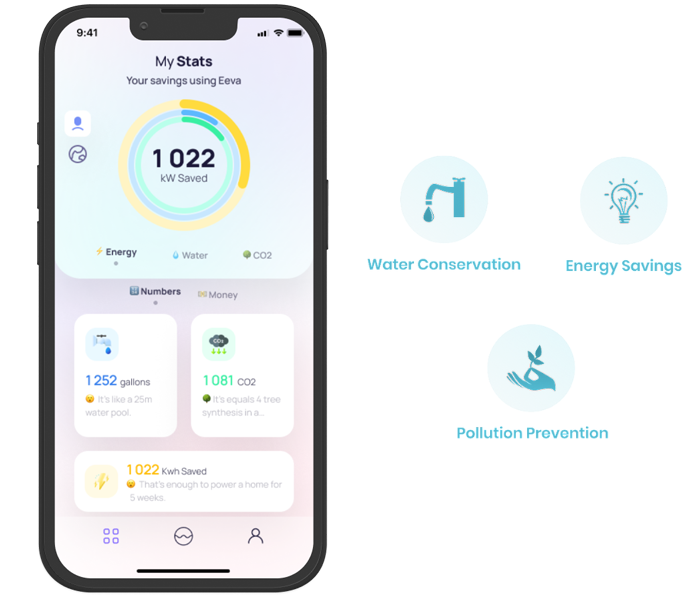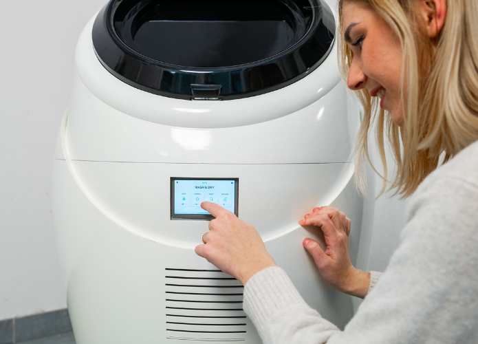 LCD dokunmatik ekran, kullanıcının modlar arasında seçim yapmasına olanak tanıyor. Ayrıca su, enerji ve karbon emisyonu tasarrufu konusunda oldukça iddialı bir cihaz. Kullanıcının bu tasarrufu takip edebileceği ve standart bir makineyle Eeva’yı kıyaslayabileceği bir akıllı telefon uygulaması da bulunuyor.
