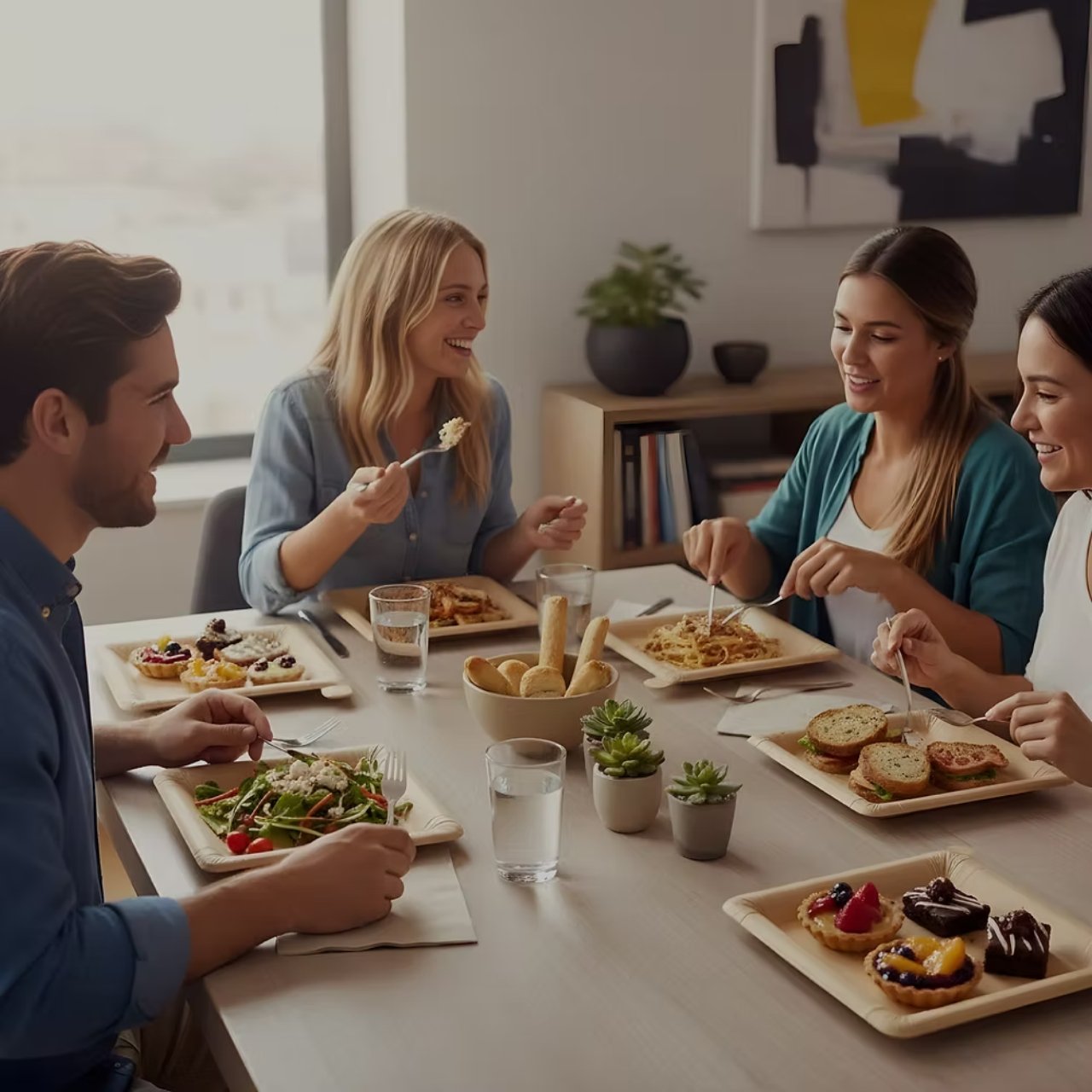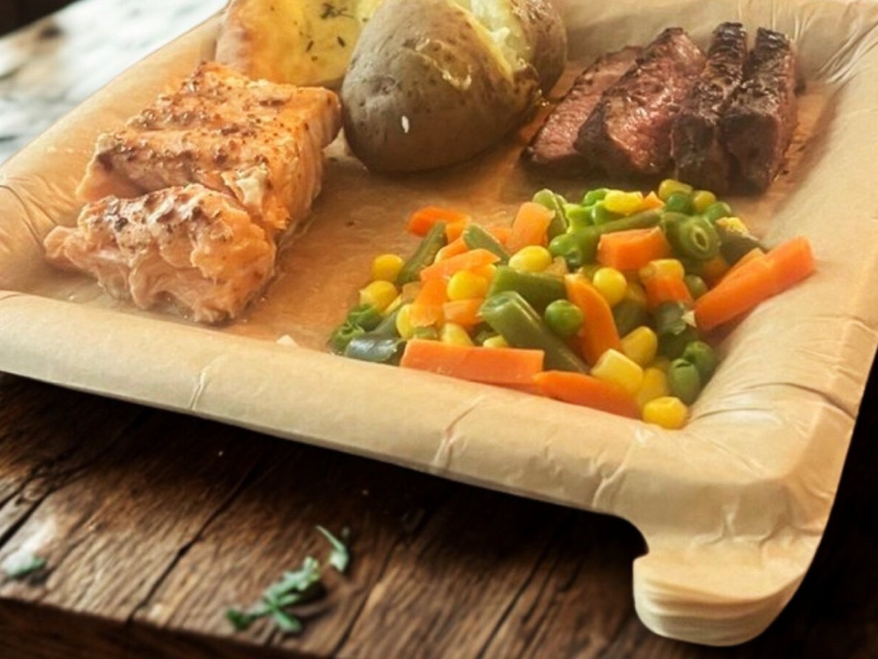 Ürünün en dikkat çeken yönlerinden biri, tasarımında kullanılan malzemeler. Geleneksel tek kullanımlık tabaklar gibi zayıf yapıda değiller; ahşap lifi ve şeker kamışı bagasından (şeker kamışının sıkım sonrası kalan lifli kısmı) oluşan doğal malzemeler, ısı ve basınçla kimyasal yapıştırıcılar olmadan birbirine bağlanıyor. Bu sıkıştırma süreci, her katmanın temiz bir şekilde ayrılmasını sağlayan sağlam bir çoklu yapı oluşturuyor. Plastik, boya, mumlu kaplama veya kimyasal bulunmayan tabaklar, bitki bazlı su geçirmez katmanı sayesinde soslu makarnalardan sıcak çorbalara kadar her türlü yemeği sızdırmadan taşıyabiliyor.