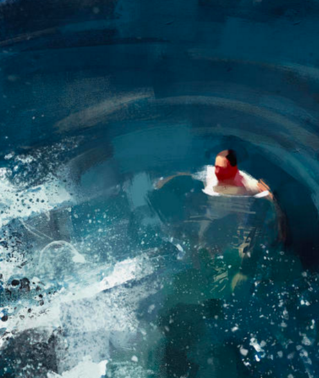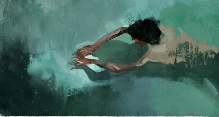 Kolombiyalı illüstratör ve ressam Pedro Covo, fırça darbelerinin farklı bir boyut kattığı resimlerinde yüzen insan figürlerini resmetmiş. Sudaki yansımaları, hareketleri ve insanların su altındaki değişken, deforme olmuş figürlerini büyük titizlikle işlemiş.