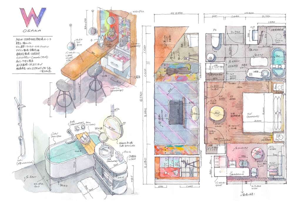 Tokyo’da çalışmalarını sürdüren mimar Kei Endo, otel odalarının ayrıntılı diyagramlarını çiziyor. Bu sulu boya çalışmalarında yer verdiği detaylarla herkesin dikkatini çekmeyi de başarıyor. Kat planları ve renk paleti nefis. Üstelik kat planlarında saç kurutma makinelerinden sabun şişelerine ve diş fırçalarına kadar detayların hem üstten hem de başka açılardan görünümlerine yer veriyor. Toshima’daki Hotel Siro ve The Okura Tokyo gibi popüler mekanlara yer verdiği seride; Kei Endo’nun ne kadar dikkatli bir tasarımcı olduğunu ortaya koyuyor. Öyle ki mekan, konfor unsurları ve kiracıların ihtiyaçlarının odanın her santimini nasıl etkilediği konusunda inanılmaz dikkatli.
