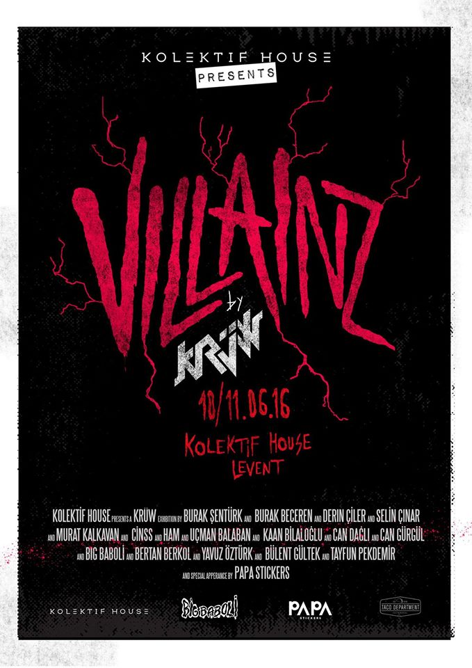 Eğer siz de “Kötünün hakkı kötüde kalmalı. Joker’in olmadığı yerde yarasa kostümü giyen zengin bir züppeyi kim ciddiye alır ki?” diyorsanız Krüw’un 19 üyesinin favori kötü karakterleriyle buluşabilirsiniz. Sticker’ın babası olarak bilinen PAPA Stickers’ın sürprizleriyle renklenecek ve Taco Department’ın tacolarıyla lezzetlenecek bu daveti kaçırmayın.
