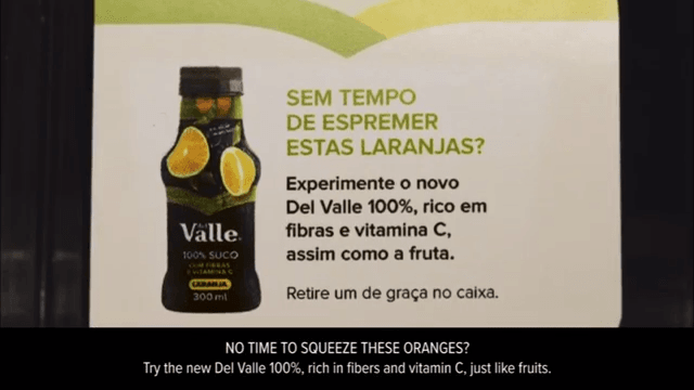 Brezilyalı süpermarket zinciri Deli Delícia için hazırlanan aktivasyonda 6 ve 7 Haziran tarihlerinde süpermarketten portakal ve elma alanlar ilginç bir mesajla karşılaşmış. Daha doğrusu mesaj o kadar ilginç değil belki ama mesajı buldukları yer oldukça sıra dışı zira mesaj, insanlar aldıklarını tarttıktan sonra tartıdan çıkan etikette yer almış. Del Valle %100 ile saf meyve suyu içmenin kendin hazırlamaktan daha pratik bir yolu olduğunu söyleyen etiket aracılığıyla ücretsiz bir şişe Del Valle %100 hediye edilmiş. Bunun yanı sıra Del Valle’nin barındırdığı vitamin ve liflere dair de bilgiler verilmiş.