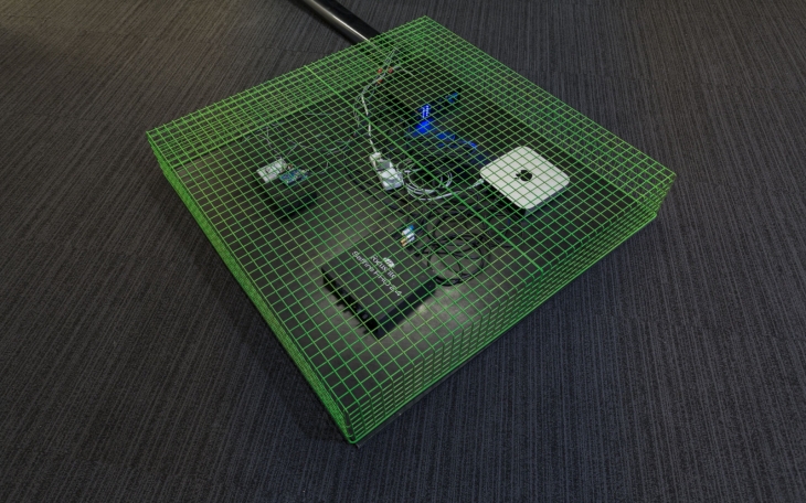 Siyah kübün içine konumlandıran morötesi ışıklar kübü ziyaret edenlerin sıvıyı havada hareket ediyormuş gibi görmesini sağlıyor. Kübün dışında kalan güç çeviricileri (transdüserler) su yüzeyinde uyumlu görsel modellerin oluşması için gerekli titreşimi yaratıyor. Su deposuna konulmuş su sensörleriyse ortaya çıkan dalgacıkları kaydedip bilgiyi sanal suda sanal dalga yaratan bilgisayar koduna çeviriyor. Bilgisayar kodu da sese çevrilip sıvının güç çeviriciler tarafından titreşmesine neden oluyor. Böylece sürekli dönüşüm halinde olan bir sinernetik enerji döngüsü ortaya çıkıyor.