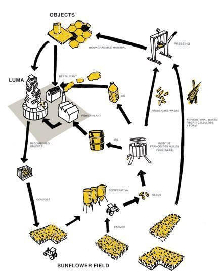 Örneğin, hayvan yemi olarak değerlendirilen ayçiçeği küspesi’ne – tohumlardan yağ çıkarıldıktan sonra kalan konsantre bir madde – bakalım. Vailly’ye göre küspenin hayvan yemi dışında da kullanılabileceği alanlar var. Bu malzeme, su bazlı bir tutkal haline getirilebilir veya ısıtılıp preslenerek deriye benzer bir malzemeye dönüşebilir.
