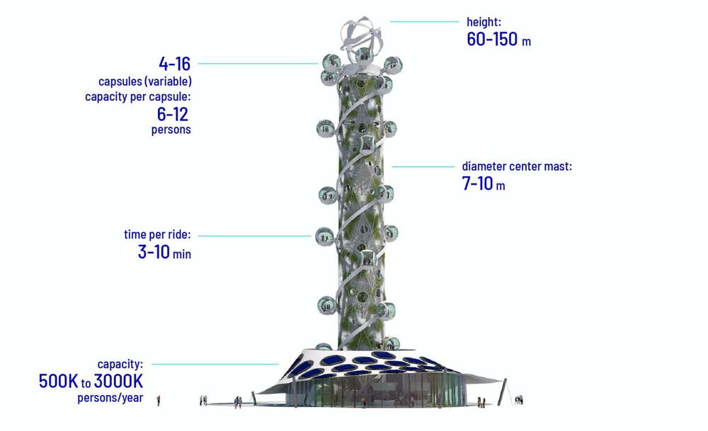 Kulenin 60 ila 150 metre arasında olması planlanıyor. Dört ila on altı arasında kabinin çelik yapı üzerinde dönerek seyahat edebileceği hesaplanıyor. Her kabine yaklaşık 12 kişi binebiliyor. Kabinlerin sarmal bir şekilde yukarı ve aşağı gitmesinin 3 ila 10 dakika arasında değişebileceği söyleniyor. Kabin pencerelerinde yer alan artırılmış gerçeklik bilgi alanları kentin tarihi ve önemli noktaları hakkında bilgi veriyor. Ayrıca kentsel gelişmeler ve sürdürülebilirlik girişimleri konusunda bilgiler de bu pencerelerde yer alıyor.