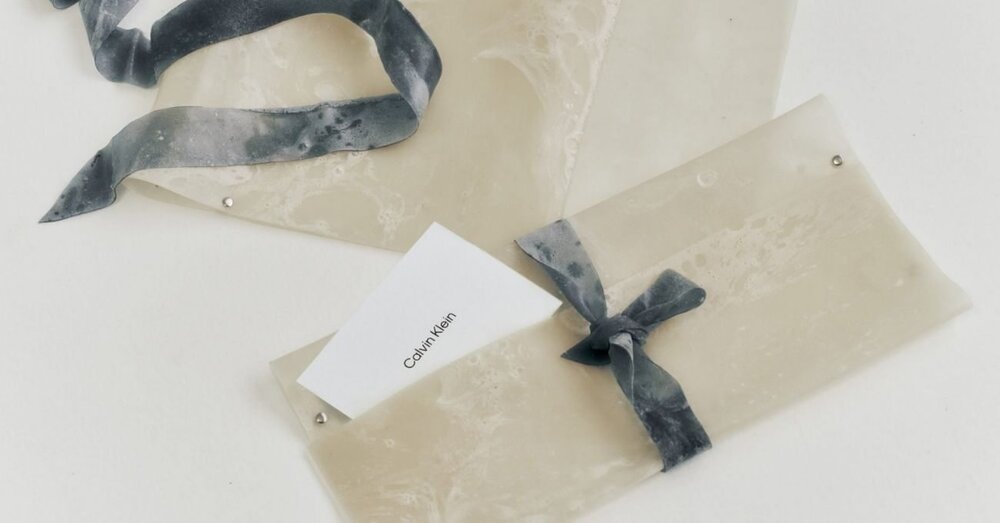 Kopenhag merkezli Natural Material Studio, moda devi Calvin Klein için sürdürülebilir bir Noel hediye paketi tasarladı. Fotoğraflarda da gördüğünüz gibi bu paket, yarı şeffaf bir poşet görünümünde. Stüdyo biyomalzemeden yapılmış tabakalara Procel adını verdi.