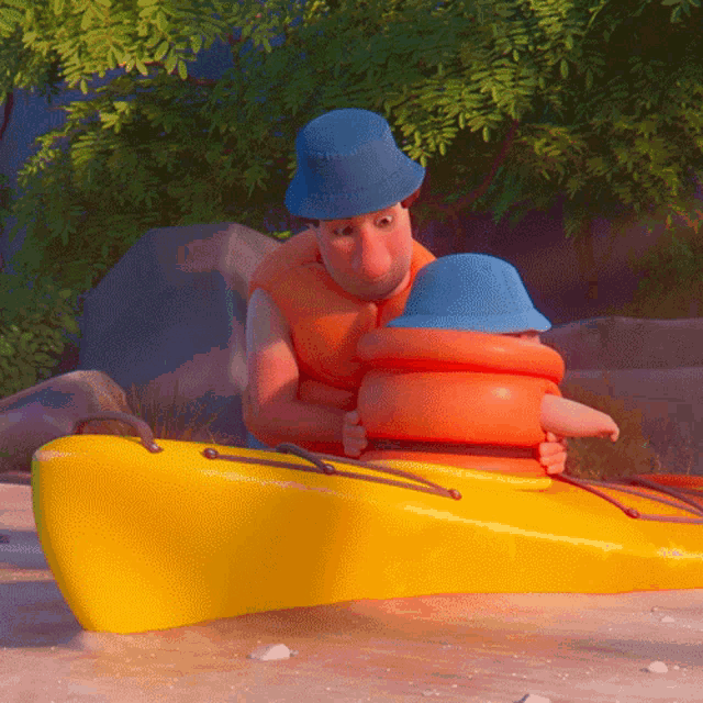 Kayak, küçük oğlunu nehirde kano gezisine çıkaran bir babanın rahatlamak yerine bolca stres yaşadığı bir hikayeyi anlatıyor. İlk nehir gezisinin zorluklarına, bebeklik çağındaki oğlunun neden olduğu zorluklar eklenince çiçeği burnunda babamız oldukça sıkıntı yaşıyor. Maceraya bir de inatçı bir kartal katılınca gerginlik ve mizah zirveye ulaşıyor. Can yeleği giyen bebek karakter, minik bir lastik top gibi oradan oraya savruluyor. Babası da sürekli onu yakalamak ve kurtarmak zorunda kalıyor. Sürekli trajedinin eşiğinden dönüyorlar. Ben daha ilk sahnede, babası bebeği kanoya monte eder gibi yerleştirdiği anda gülmeye başladım. Yalnızca 6 dakikalık, diyalogsuz, bol mizahlı, sakin ve çarpıcı renk paletine sahip bir 3B animasyon.