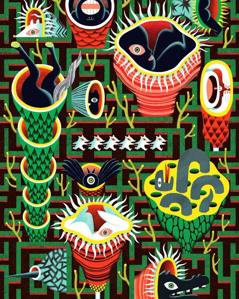 Dani Choi, Güney Kore’de doğan ve şu anda Brooklyn, New York City’de yaşayan kendi deyimiyle sadece zevk için çizim yapan bir illüstratör. Gerçek dışı işleriyle bilinen ve aynı zamanda resimli çocuk kitapları da hazırlayan Dani, eserlerinde dünyadan yabancılaşma, ayrılık ve bireysellik duygularını ön plana çıkarıyor. Canlı renklere sahip tuhaf karakterlerle bezeli kompozisyonlarında birden çok katman bulunuyor ve her katmanda farklı bir hikayeyi yakalamak, bakış açısına göre farklı anlamlar çıkarmak mümkün oluyor.