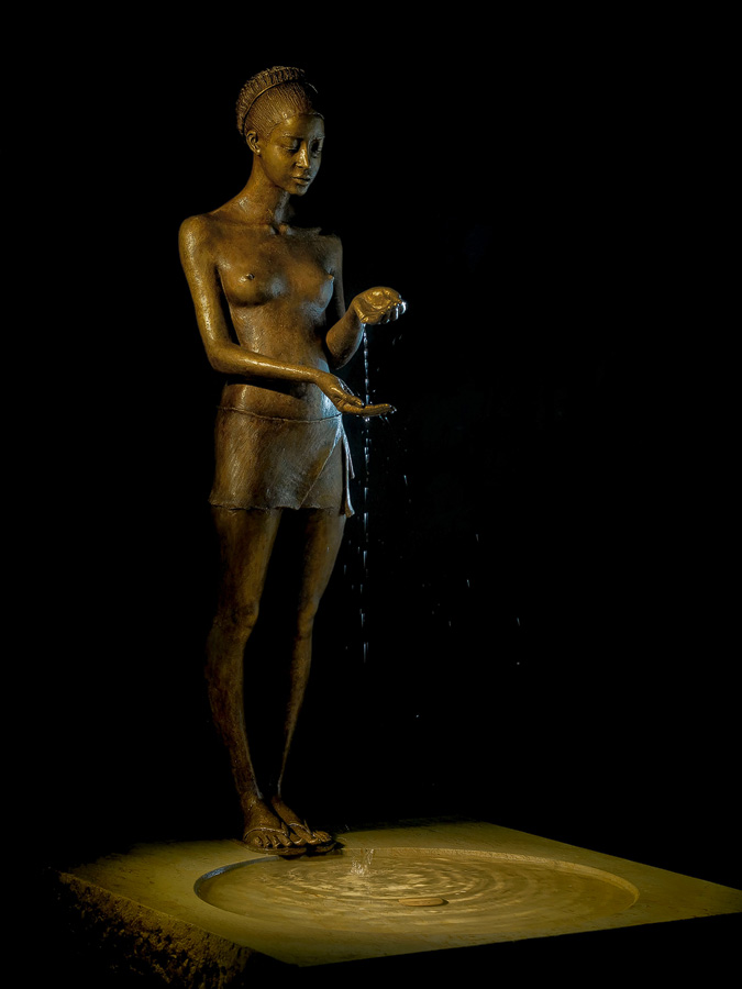 Malgorzata Chodakowska’nın bronz heykelleri, akan su sayesinde canlılık kazanıyor.