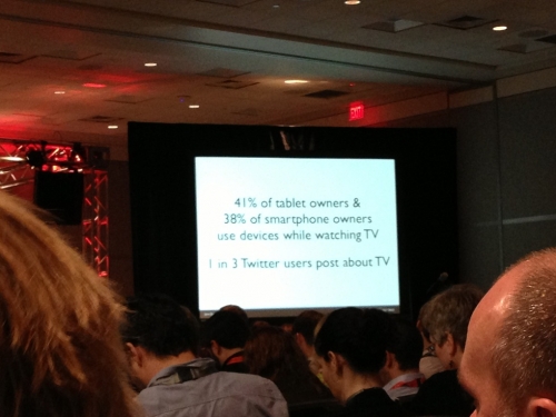 Bir süredir “second screen” lafı hayatımızda olduğundan enteresan olabileceği umudu ile oturuma girdim. Salon ağzına kadar doluydu ve benden sonraki kızı salon dolduğu için almadılar. Bu sefer şansım yaver gitti ama sonradan farkettim ki, önemli oturumları salonun dışındaki televizyon ekranlarından ve boş odalardan canlı yayınlıyorlarmış.