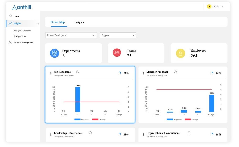 Anthill; imalat, tedarik zinciri ve perakende sektörlerindeki büyük işletmelerde masa başında çalışmayan çalışanların diğer çalışanlarla aktif bir şekilde bağlantı kurmasını sağlayan ve işteki üretim sürecini hızlandıran bir yazılım çözümü.