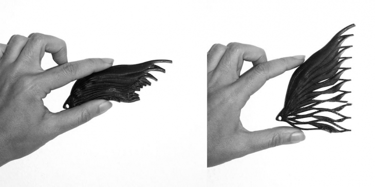 Söz konusu teknolojinin üç boyutlu baskıyla birleşimi bir yana, vücut ve çevre arasındaki ilişkinin nasıl bulanıklaşabileceği de gösteren proje tasarımcı ve mimar Behnaz Farahi‘ye ait. Malzeme davranışı ve çağdaş sanat ile mimaride f olan teknolojilerin uygulamalarıyla ilgilenen Farahi, University of Southern California’ya bağlı School of Cinematics Art‘ta bulunan Medya Sanatları ve Uygulamaları programında doktora öğrencisi. Kazandığı birçok ödül arasında, 2013’te Kinetic Art Organization tarafından düzenlenen uluslararası yarışmadaki birincilik ödülü de bulunuyor. Başka üç boyutlu baskı uygulamalarında da bulunan Farahi, şu sıralar NASA tarafından fonlanmış ayda yapılar basabilen robot geliştirme projesinde çalışıyormuş.