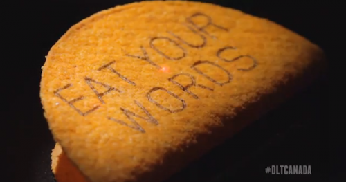 Amerika’da Doritos Locos Tacos ürününün uzun süredir satışta olup onların ülkesinde olmamasına markanın Kanadalı sevenleri Twitter’dan fırsat buldukça sinirleniyordu. Taco Bell de ürünün Kanada’ya girişini o lafları söyleyenlere laflarını yedirerek duyurmayı tercih etmiş, bunun için de özel bir etkinlik düzenlemiş.