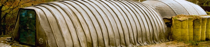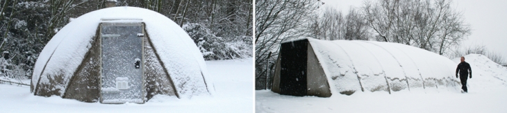 Çevre dostu ve hızla inşa edilebilen aynı adlı materyal teknolojisine sahip İngiliz üretim şirketi Concrete Canvas bu kapsamda iki kişi tarafından 24 saatten az bir sürede yerleştirilebilen 25 ila 50 metrekarelik büyüklüğündeki sığınak formatları da üretiyor.