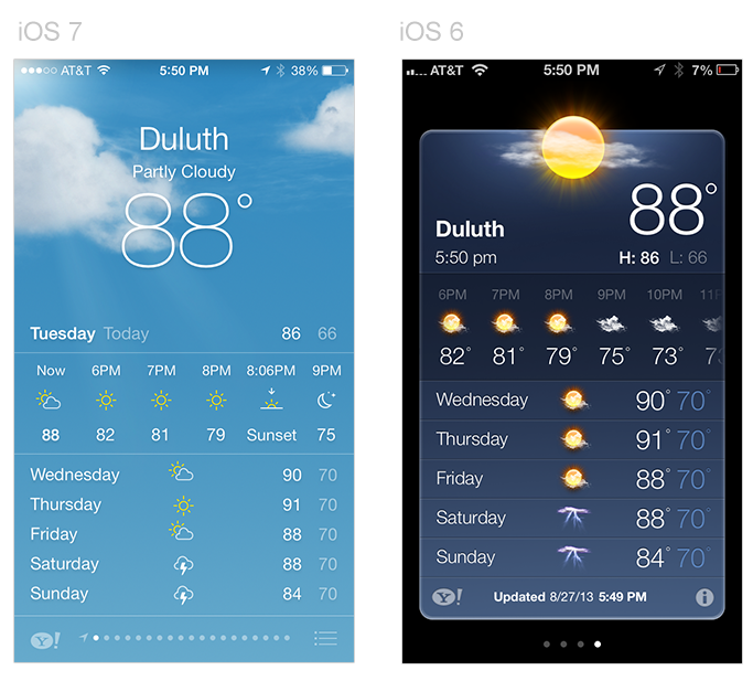 Sonrası: iOS 7 üzerine gelen en çarpıcı bildirimler arasında iOS 6’ya göre daha çok animasyon barındırması nedeniyle bazı kullanıcıları hareketliliğin tuttuğu (baş dönmesi, mide bulantısı vb.) yer alıyordu. Önceden özdeşleştiği tasarım kodlarını bir kenara bırakarak özgünlüğünü kaybettiğine dair eleştiriler de almıştı. Apple iOS 7.1. sürümünde hareketlilik tutmasına neden olan ve birkaç başka unsuru düzeltti. iPhone 4s, iPad2 ve iPad Mini’ye uyumlu olacak iOS 8’in temel arayüz tasarımında ise büyük değişiklikler beklenmiyor. Etkileşimli bildirim, e-posta yönetiminde zaman kazandıran Quick Reply seçeneği ve süreklilik özelliği şimdiden öne çıkan yeniliklerden.