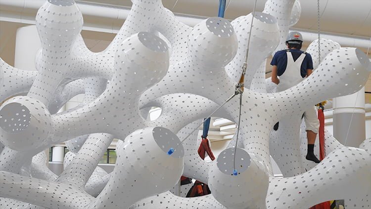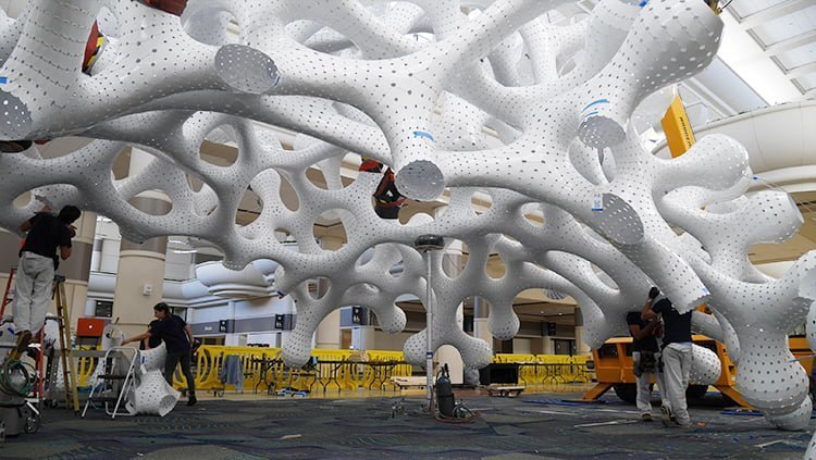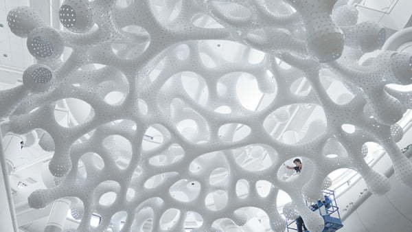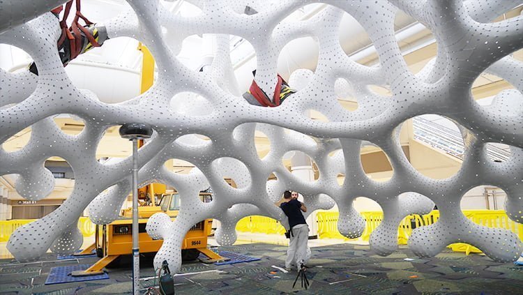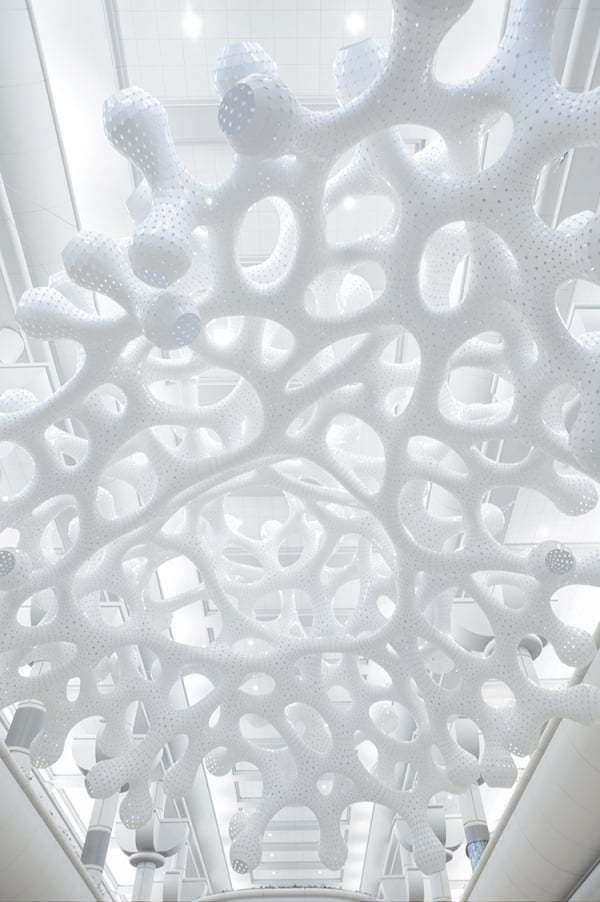 Köpüğümsü bir mercan resifini andıran bu devasa yapı, başınızı kaldırıp tavana bakmak için iyi bir sebep gibi görünüyor.