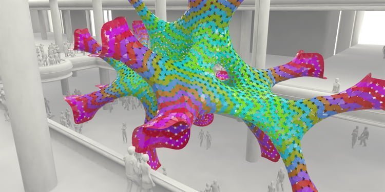 The Very Many stüdyosunun kurucusu mimar Marc Fornes‘in yapısal çizgiler olarak isimlendirdiği devasa yapı, Orlando’da yer alan Orange County Convention Center‘ın tavanına inşa ediliyor. 4.600’den fazla alüminyum şeritin birleşiminden oluşan Under Magnitude, kalıcı olma fikriyle hayata geçiyor. Delikli ve kavisli bir tasarıma sahip olan Under Magnitude, 2 kat arasındaki boşluğu kaplayan bir yerleştirme.