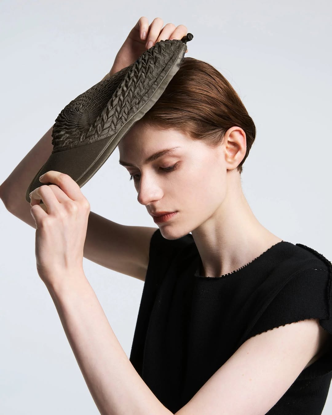 Japon moda markası Issey Miyake, A-POC ABLE serisi kapsamında geliştirdiği TYPE-O CAP ile dikkat çekiyor. “Steam Stretch” adı verilen teknik sayesinde, başlangıçta tamamen düz bir kumaş parçası olan şapka, giyildiğinde heykelsi ve başı saran üç boyutlu bir forma dönüşüyor. Kumaşın içine dokunan ısıya duyarlı iplikler, geometrik pililerin sonuna kadar açılmasını sağlıyor.
