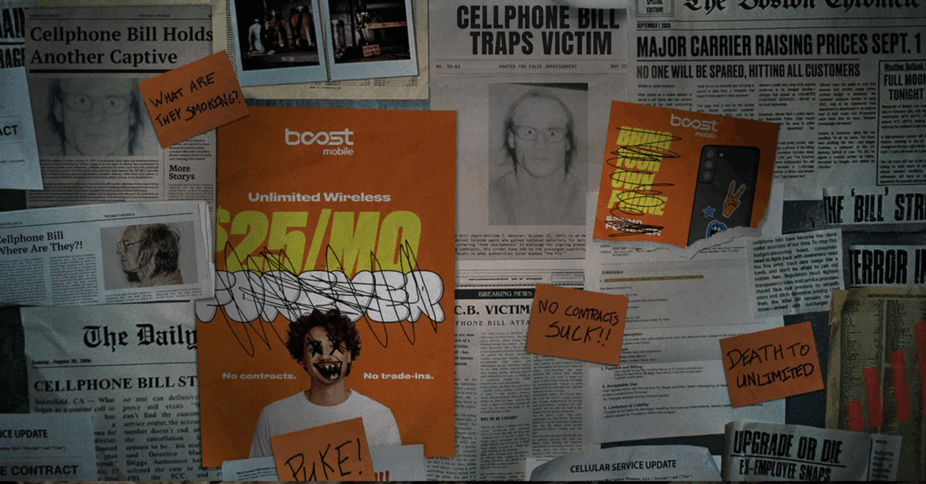 Boost Mobile, Liquid Death ile güçlerini birleştirerek gizli ücretleri ve karmaşık sözleşmeleri bir korku karakterine dönüştürdü: Cellphone Bill.