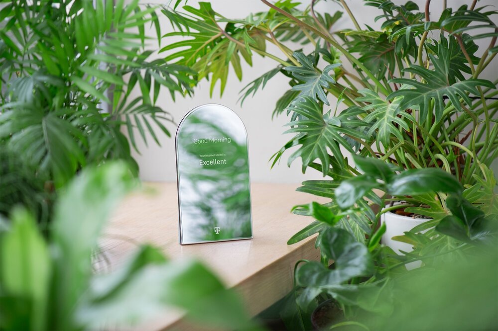 Yönlendirici, cihaz kapatıldığında arayüzü gizleyen ayna gibi yansımalı kaplamasıyla şık bir görünüme sahip. Tüm erişim portları ve kablolar, gizlenebilen harici bir adaptör üzerine yerleştirilmiş. Yönlendirici, sinyali güçlendirmeye yardımcı olan ağ tekrarlayıcıya bağlanabiliyor. Koleksiyon, sürdürülebilir ve çevre dostu malzemelere odaklanmış. Bunu ağ tekrarlayıcıların doğal ahşap işçiliğinde gözlemlemek mümkün. Kullanıcı ağ tekrarlayıcıya tek bir dokunuşla, bir ön yüzeyde faydalı bilgiler görüntüleyebiliyor. Cihazın çıkarılabilir bir ayağı bulunuyor. Böylece bir yüzeye oturtulabiliyor veya duvara takılabiliyor.