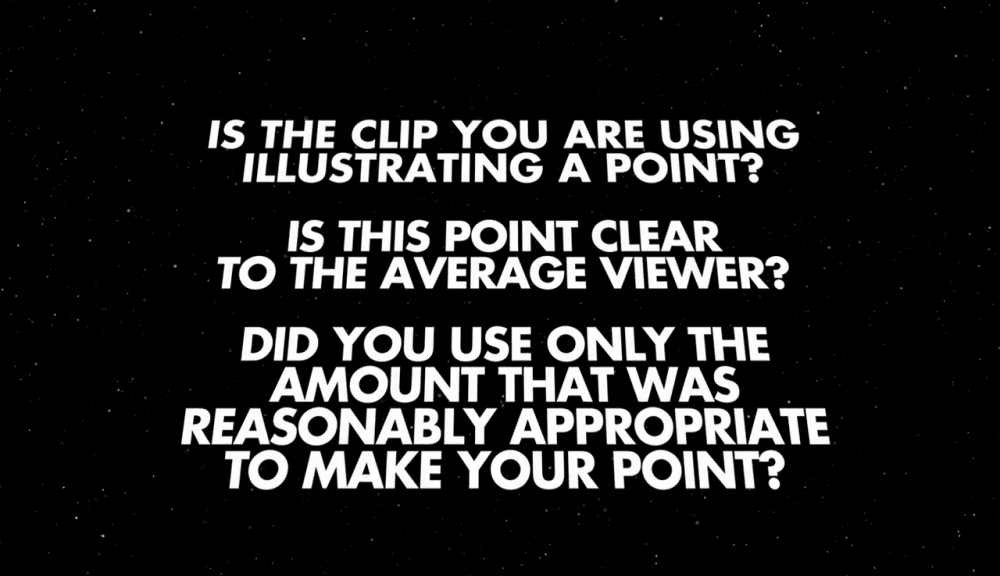 Kirby Ferguson, bu videosuyla adil kullanım hakkında en temel bilgileri veriyor. Çünkü her telifli materyali bu yasanın arkasına saklanarak amaçları dışında kullanmak da kulağa pek yasal gelmiyor. Bu nedenle de adil kullanımın kanatları altında olduğu anlamak için 3 basamaklı basit bir test yöntemi anlatıyor. Ve videonun sonunda da adil kullanım hakkında soruları olanları paylaşamaya davet ediyor. Ferguson, bu soruları derleyip bir avukatla birlikte canlı olarak yanıtlayacak.