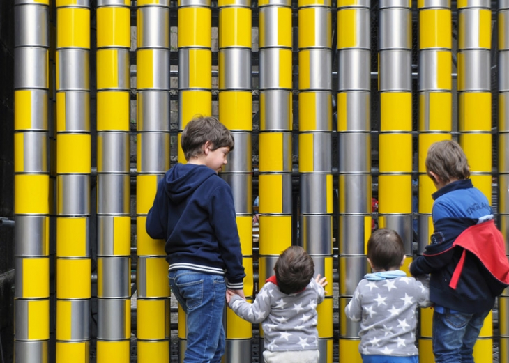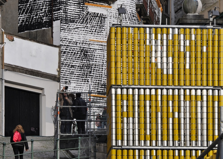 Porto’da faaliyet gösteren tasarım stüdyosu Moradavaga’nın “Locomotiva” projesinin bir parçası olarak hazırladığı yerleştirme “Vira-Lata”, teneke silindirlerle çevrili bir kuleden oluşuyor. Bir yüzü sarıya boyanıp, bir yüzü metalin doğal renginde bırakılan teneke silindirler hareketli ve el ile kolaylıkla döndürülebiliyor. Kulenin içerisine yerleştirilen merdivenden inip çıkan insanlar, kutuları çevirerek, kuleye dışarıdan bakıldığında piksel görünümde olan mesajlar bırakılabiliyorlar.