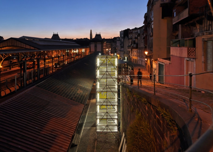 Yerleştirme, unutulmuş boş bir otoparkı insanların bilfiil katılımıyla canlanan bir kamusal alana dönüştürmeyi amaçlıyor. İçindeki merdiven sayesinde yayaları bir yukarı sokağa bağlarken, aynı zamanda bu yeni halka açık iletişim kanalının bulunduğu köşeyi tarihi tren istasyonuna bağlıyor. Kullanılan sarı, Porto trenlerinin sarısı ve dönen silindirler istasyondaki zaman çizelgesinin hareketini taklit ediyor.