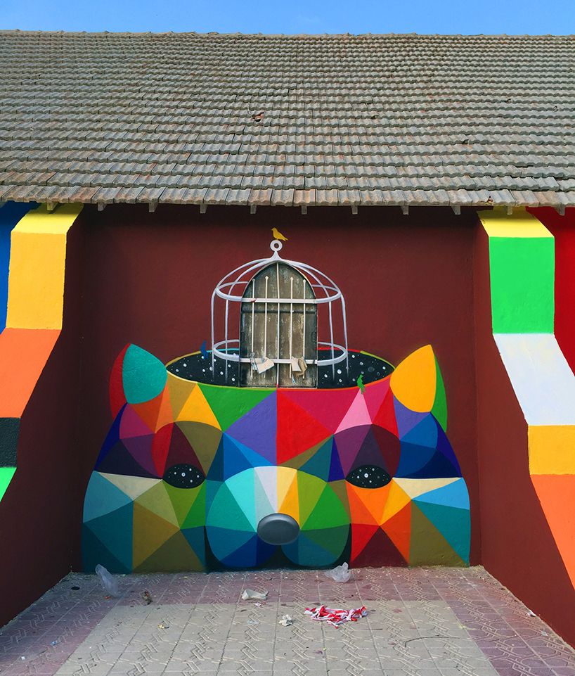 Önceki çalışmasında kaykay pistine dönüştürülen eski bir kiliseyi tuval olarak kullanan ve muazzam bir duvar resmiyle süsleyen Okuda San Miguel, bu defa karşımıza Fas’ın Youssoufia kentinde çıktı. İspanyol sanatçı, terk edilmiş bir kilisenin dış cephesini hayvan figürlerinden portrelere uzanan birçok farklı detayla bambaşka bir görünüme kavuşturdu. ‘’11 Mirages to the Freedom’’ adı verilen ve yapının yüzeyini baştan aşağı saran resimde capcanlı renklerdeki 11 farklı yüz yer alıyor.