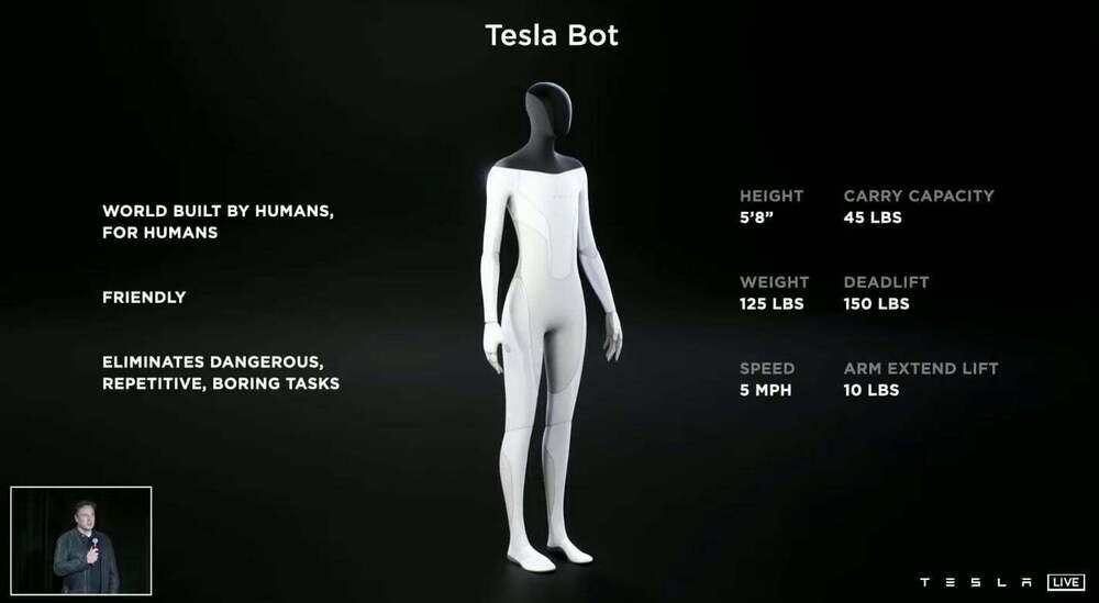 Tesla, dün gerçekletirilen AI Day etkinliğinde sürücüsüz otomobiller için geliştirilen yapay zeka platformu Dojo kadar ilgi çeken bir tanıtım daha yaptı. Etkinliğin sonlarına doğru Elon Musk, Tesla’nın insansı robotu Tesla Bot’u tanıttı. Tesla Bot’un şirket içindeki kod adı ise Optimus.