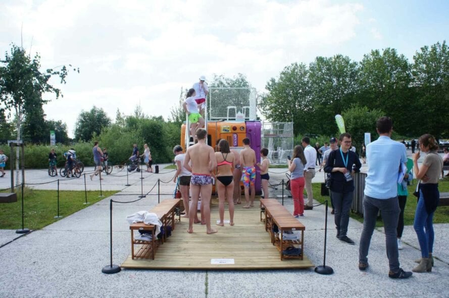 Havuz aynı anda 10 kadar yüzücüyü ağırlayabiliyor. Kuzey Fransa’da Artois bölgesinde, Louvre-Lens Parkı’nda sergilenen yerleştirme, serinlemek isteyen bölge sakinlerine geçtiğimiz aydan bu yana havuz sefası sunuyor.