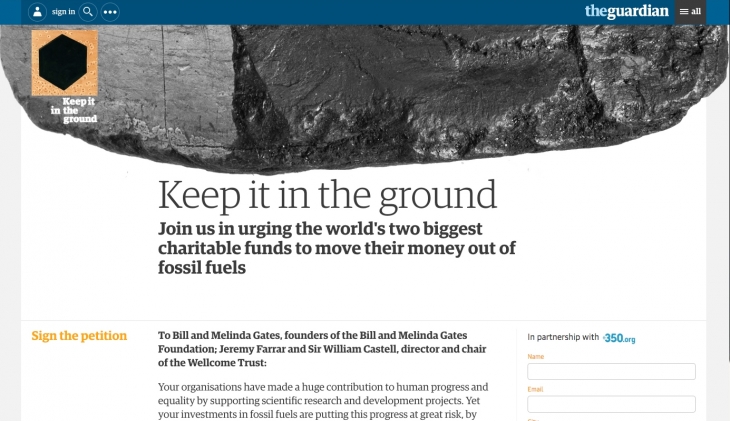 Bizim dikkatlerimiz dışında kampanyanın asıl hedefi Bill and Melinda Gates Foundation ve Wellcome Trust derneklerinin dikkatlerini çekmek. Zira bu dernekler dünyanın en iyi 200 fosil yakıt şirketlerine yatırım yapıyor. The Guardian da söz konusu dernekleri beş yıl içinde bu şirketlere yatırım yapmayı tamamen bırakmaya davet ediyor.